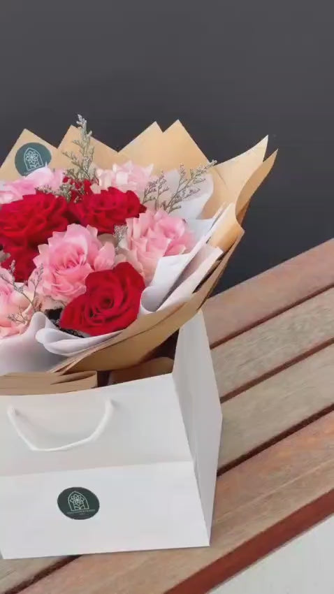 Soft, romantic tones meet classic depth in a bouquet that feels warm and expressive. A graceful composition that captures tenderness, balance, and modern Valentine’s charm.