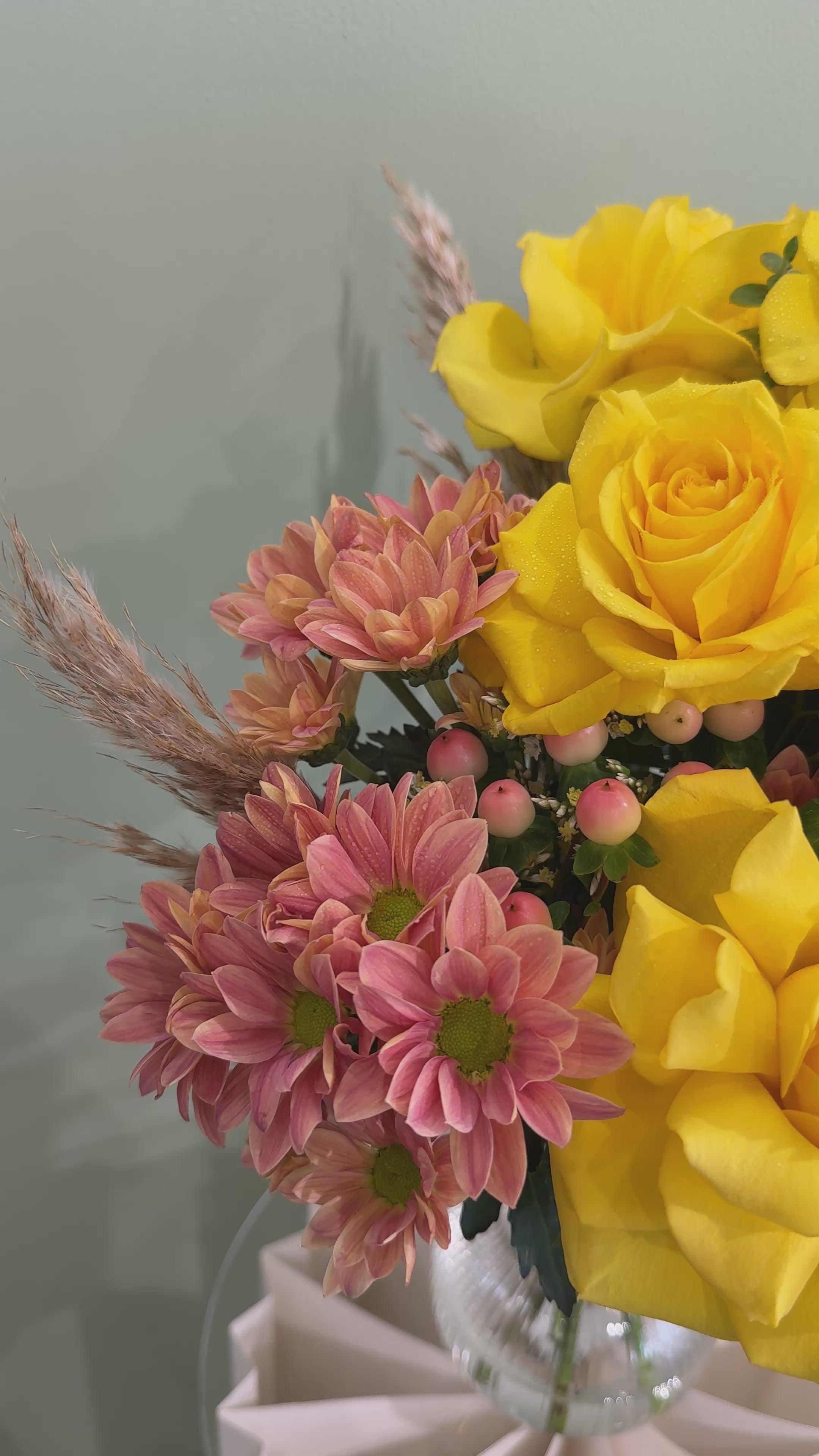 Radiant and full of life, this bouquet glows with golden blooms contrasted by warm, earthy tones. Its sunlit palette and sculptural form bring an effortless touch of joy and modern elegance to any space.
